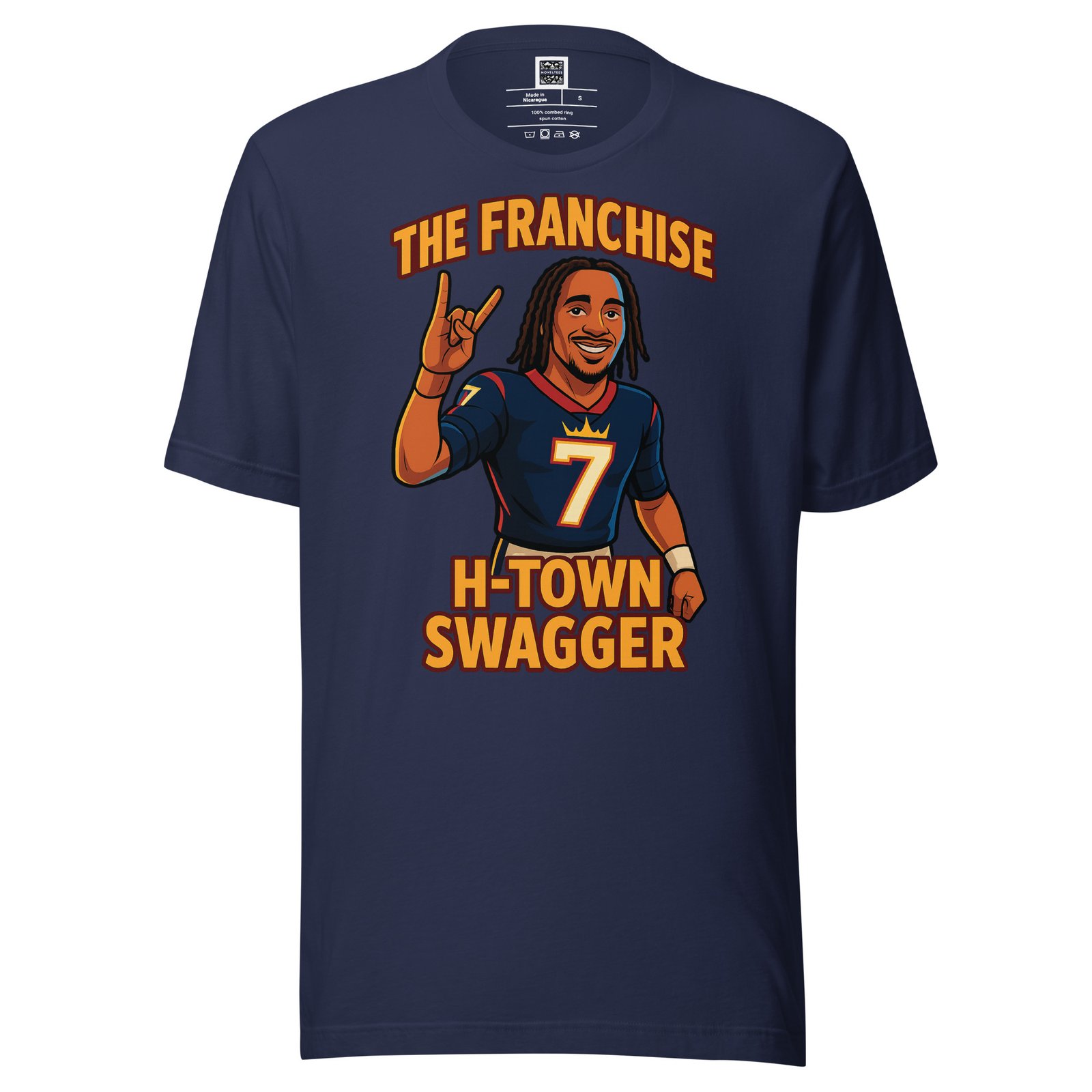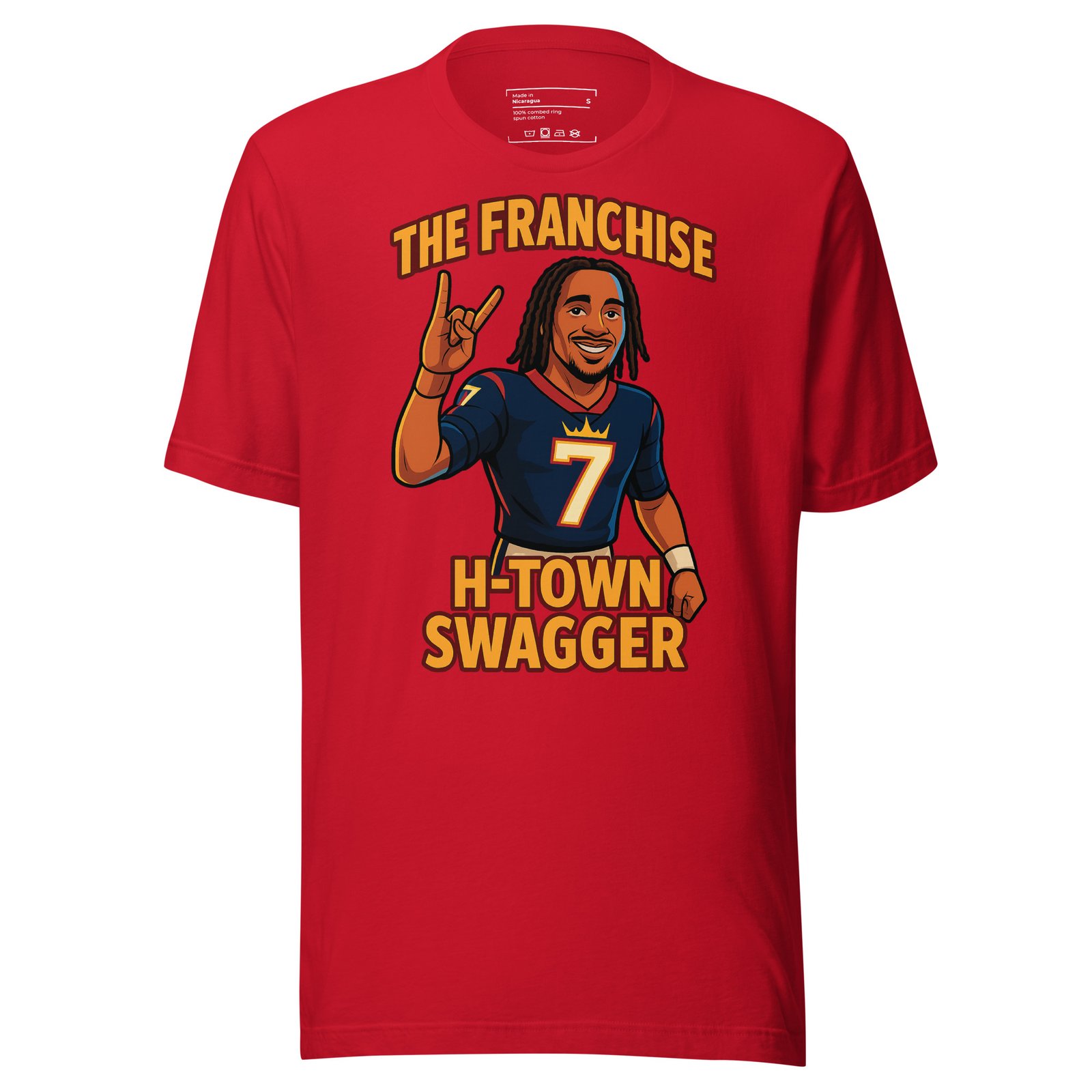Celebrate your fandom with this exclusive CJ Stroud: The Franchise – H-Town. Designed by fans for fans, this piece combines premium quality with bold original artwork that captures the spirit and passion of true supporters.