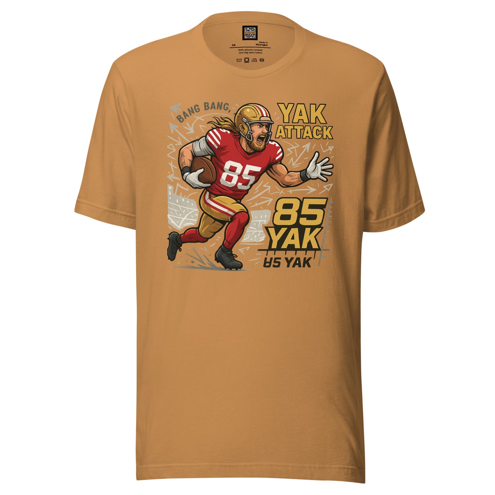 Celebrate your fandom with this exclusive Kittle – Yak Attack. Designed by fans for fans, this piece combines premium quality with bold original artwork that captures the spirit and passion of true supporters.